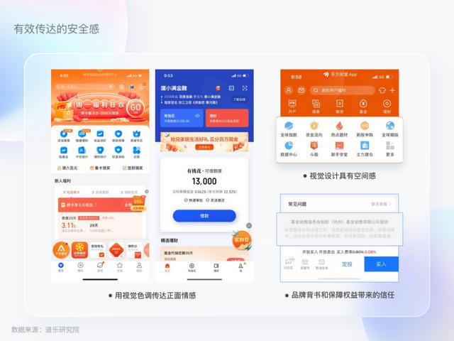 我们根据目前大部分资管机构直销平台界面的调研,主要总结出安全感传达和较低认知负荷两大特点。