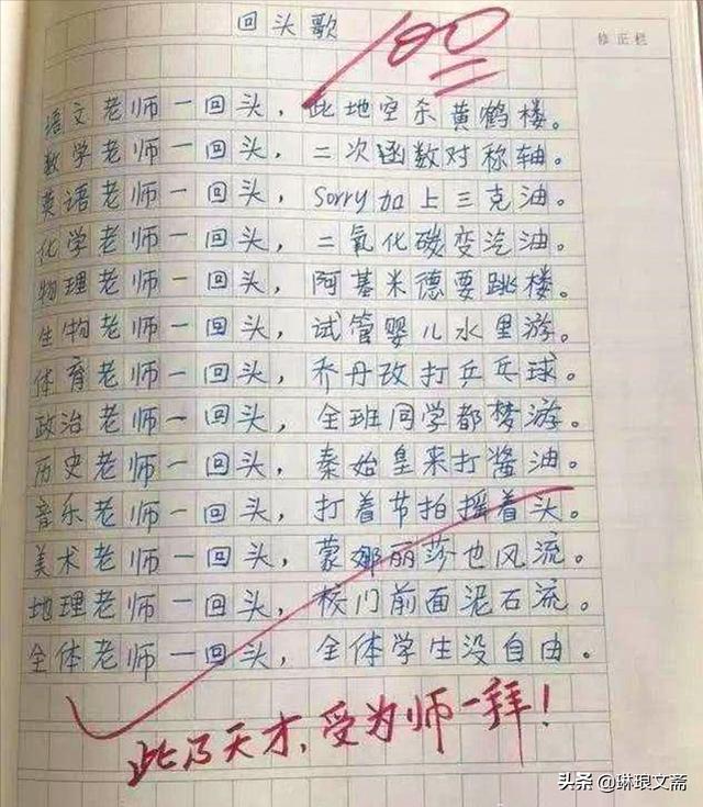 神奇的诗歌,老师也是皮了一下:活了一大把年纪了,道理都懂,就是写不出。