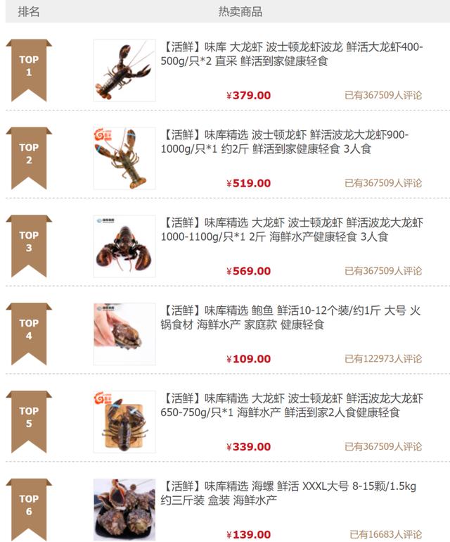 味库海鲜的公开宣传称自家产品“低温冷冻、规模化、标准化、安全卫生”,在某平台上可以看到,味库海鲜的单品销量不低,前三名的单品评论都超过了36万。