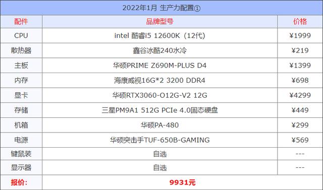 总结:2022年1月组装组装电脑配置单推荐及显卡cpu选择建议