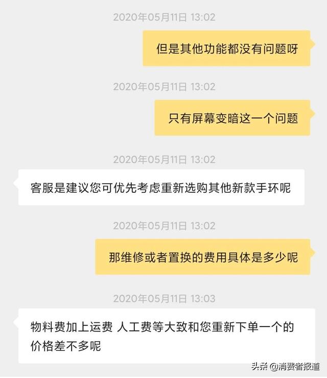 在采访过程中,《消费者报道》发现,消费者们并没有得到关于屏幕变暗起因的明确答复。左小姐告诉《消费者报道》,小米客服人员并没有解释屏幕变暗的原因,而是直接建议她加钱置换新的小米手环产品。“客服人员告诉我维修的费用和买新手环的费用差不多,最好不要维修了。”左小姐表示。