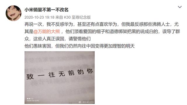 “万能的大熊”是微博上多年的华为支持者了,常年替华为宣传,同时一直批评小米等友商,一度因为传谣小米集团副总裁卢伟冰被工信部约谈,而被传遭起诉。