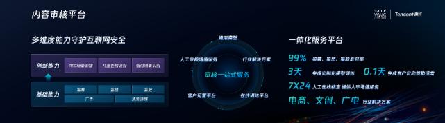 在广电传媒行业,通过引入 AI 技术,腾讯可以将视频处理效率提升至 1:1(花费 1 小时处理剪辑 1 小时长度的视频),实现符合标准的结果输出。在智能审核场景中,AI 能帮助媒体内容管控效率提升并降低漏检率。