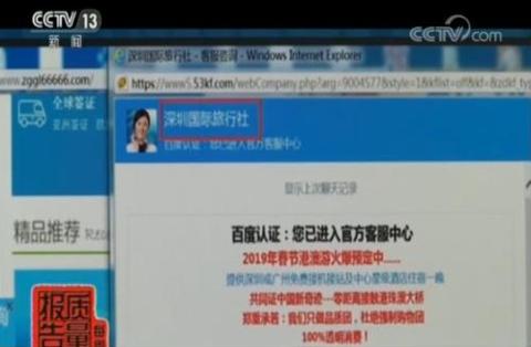 国旅(深圳)国际旅行社有限公司 副总经理 吴创杰:这两年其实假冒我们中国国旅深圳公司的案例非常多,我们现在大概有个数据是有90%的客人是通过百度搜索引擎,获取我们相关一些所谓的港澳游的信息,百度做的V认证其实在这里存在一些问题,这个V认证对商户的真实性,包括他的信誉性核实存在漏洞,这导致到这客人在获取信息的时候是信任这个V认证,实际上(百度)在核实的时候,没有跟我们真实的商户进行核实。