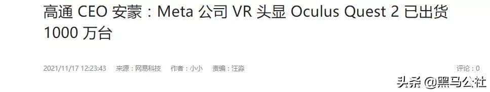 旗下公司 Oculus 开发的头戴 VR 头显 Quest 2,销量也已经达到了1000万台。