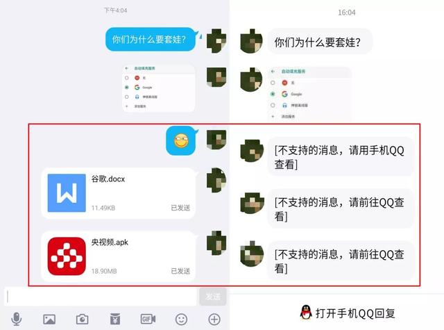 除文字消息查看、图片下载,表情包、文档等也无法预览。