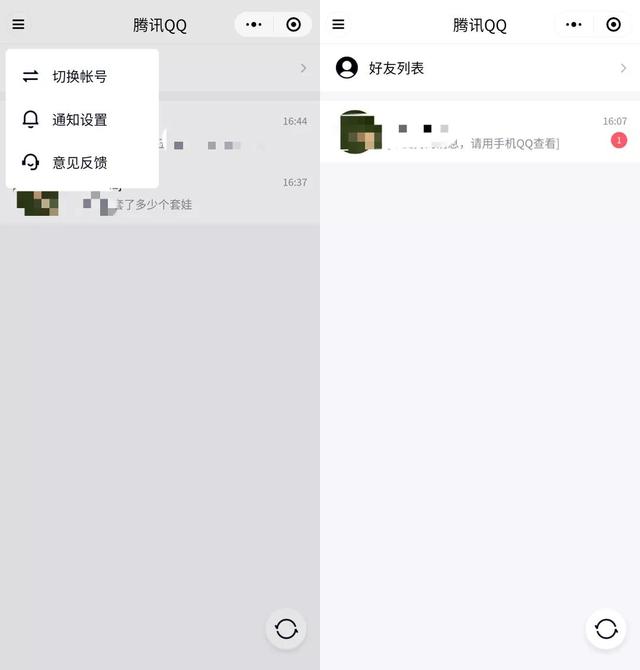 目前微信小程序版 QQ 主要有两个功能:接收消息和切换账户。