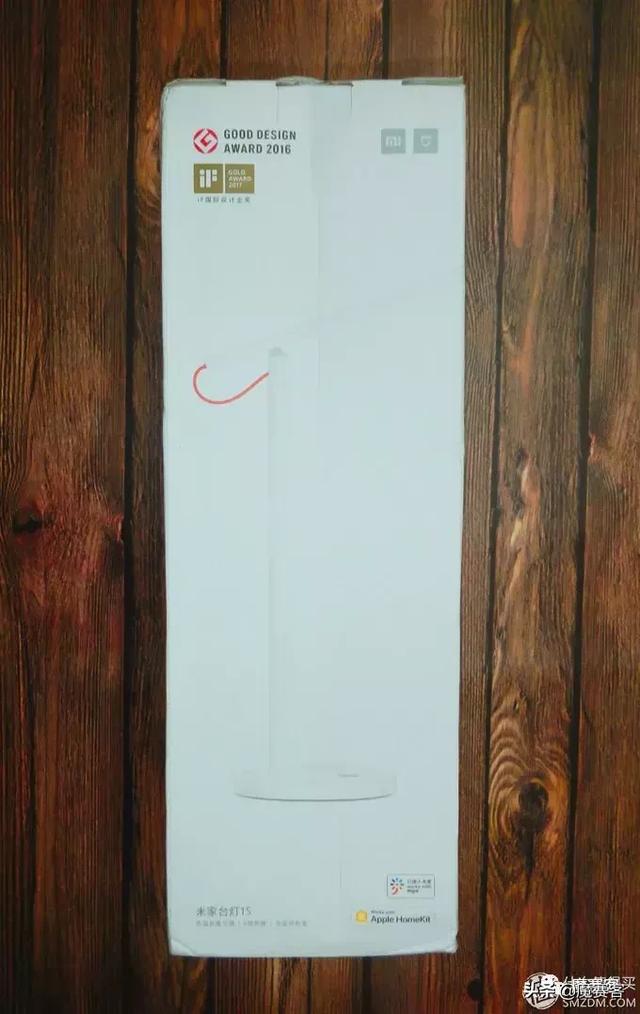 虽然台灯体积并不大,但包装并不小,在包装正面写有这款1S的各项亮点:IF国际设计金奖、色温亮度可调、A级照明、无蓝光危害、可接入米家、Apple HomeKit可控。