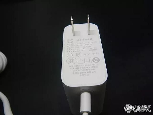 电源适配器插头处写着适配器的参数,适配器背后是米家LOGO。
