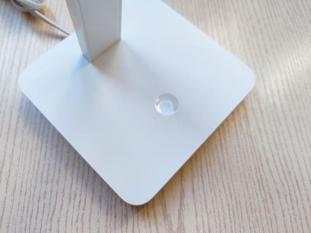 方形底座上点缀着一个圆形触控按钮,也是这个灯上仅有的控制键。1.5m的电源线直连在灯上,长度基本上够用,甚至很多时候还需要绑起来收纳。