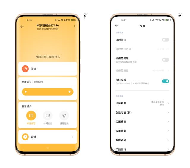 APP里可以开关灯,调节灯的亮度、情景模式选择、定时设置、延时关灯、视觉疲劳提醒等。而情景模式包含专注读写、休闲放松、温馨起夜,也就是前面高中低三种亮度,总有一款适合你。