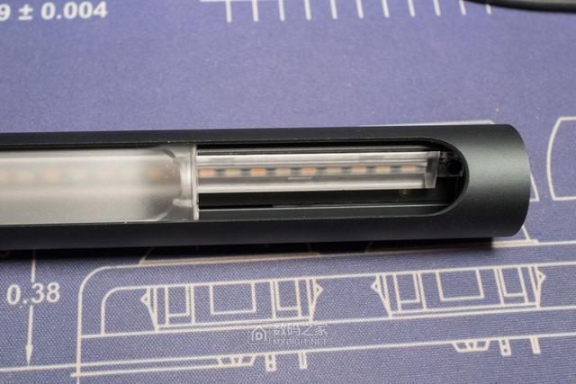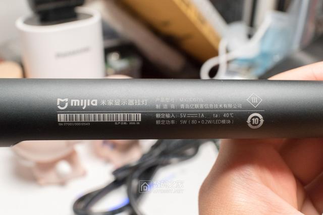 灯体本身是一体成型机加工的铝桶,应该做了阳极加工,金属黑色,这个是背后的铭牌5V1A最高5W和米家台灯功率相同,亮度也差不多。