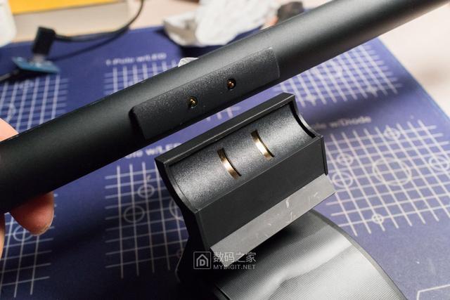像不像数字7,其实是支架,挂在屏幕上,后面7的尾巴是配重,挺沉的,和BenQ一样利用重力作用,稳定夹在屏幕上。