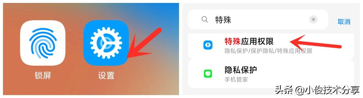 一、开启不受流量限制打开设置,然后直接在搜索框输入【特殊应用权限】
