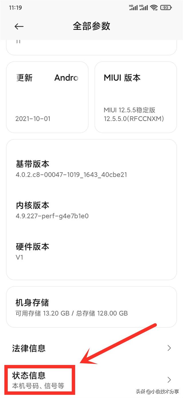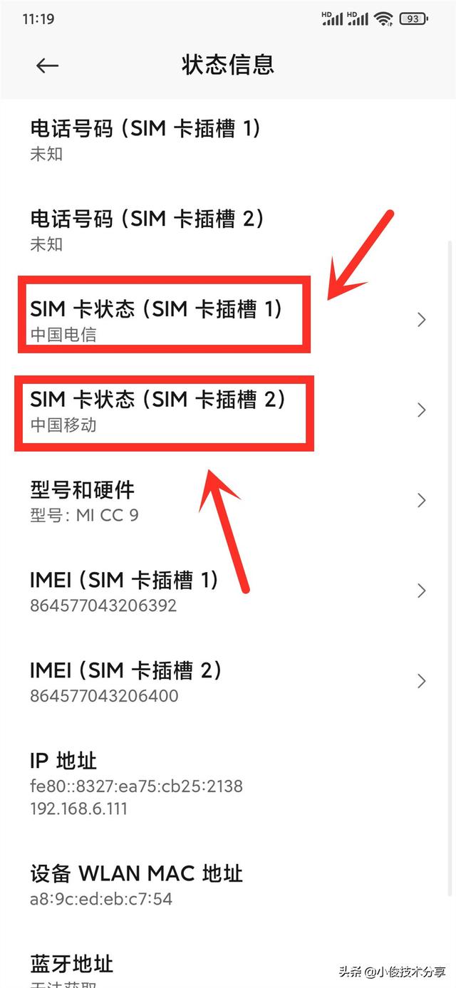 我们直接点击【状态信息】并打开,打开之后在这里就可以清楚的看到【SIM卡】状态了,其实在这里才是真正记录了我们的手机信号强度