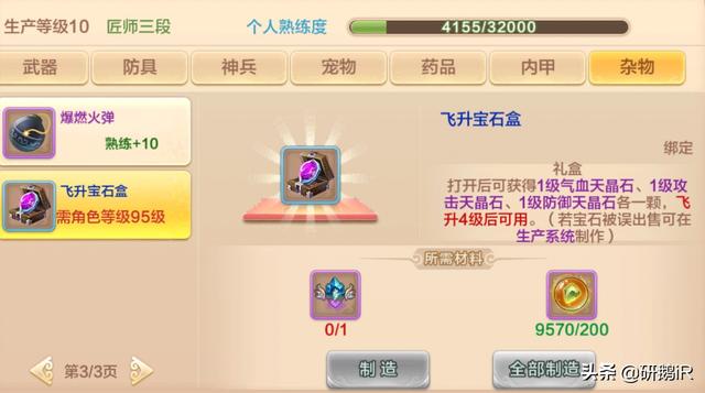 飞升装备升级和强化都需要大量的材料,但是属性提升却很少,尤其是飞升装备的升级。所以尽量前期飞升装备升到9级即可。强化到12级即可。