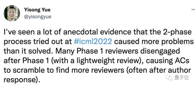 根据加州理工教授Yisong Yue分析,问题在于很多审稿人一阶段给出简单评价后就不跟进了,导致元审稿人必须再分配更多的审稿人,不够及时的话就会发生在作者回复之后。