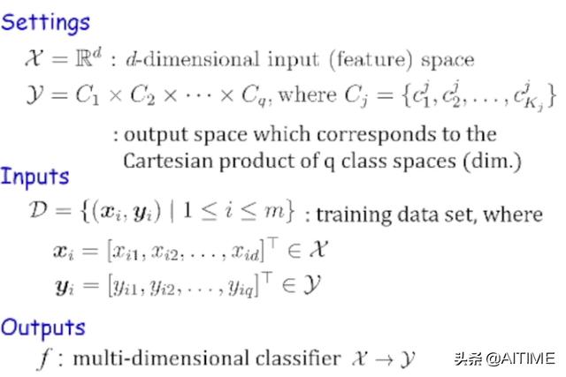 对于学术界研究较多的多标记分类(Multi-Label Classification, MLC), 它输出空间中的标记可以看作是多个类似于MDC的二进制类别变量,如下图所示。但从概念上讲,MLC中的所有标记都属于同一个类别空间。也就是说,MDC与MLC主要的不同之处在于:MDC通常假设语义空间是异构的,而MLC通常假设语义空间是同构的。