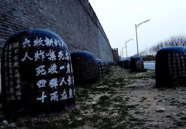 宛平城城墙边上的石鼓记述着当年日军的暴行