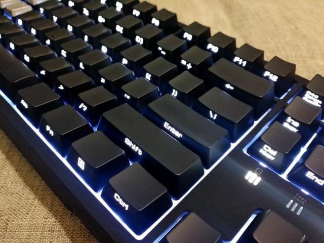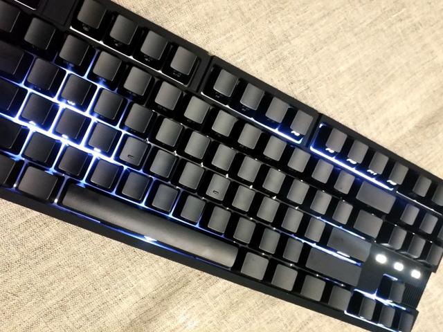 3)侧刻键帽逼格满满,尤其夜里关了灯,微蓝的背光立马让人心旷神怡,不一样的体验;
