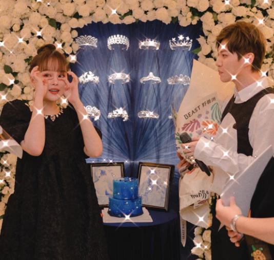 不仅仅如此,球球还公开了求婚现场的照片,现场布满了白花,后面更是一组花墙,整体非常的豪华浪漫。