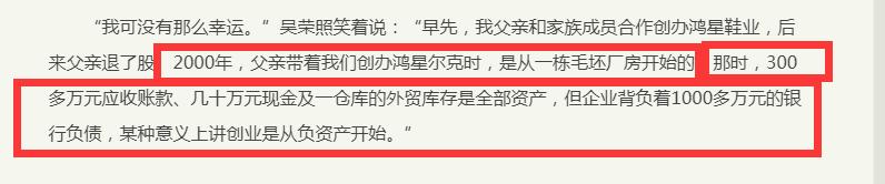 2000年,吴父带着25岁的大儿子吴荣光一手建造了“鸿星尔克”,可开局并不顺利,用吴荣照的话来说就是:是从一栋毛坯厂房开始的。