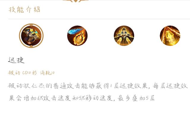 一是被动普攻增加攻速的增强,通过介绍可以看到,狄仁杰可以通过普攻增加最多30%的移攻速和25%移速,单说30%的攻速,例如末世,闪电匕首这样的装备提供的攻速合成也只有30%,可想而知狄仁杰前期可以凭借被动攻速和移速的加成建立多大的优势。