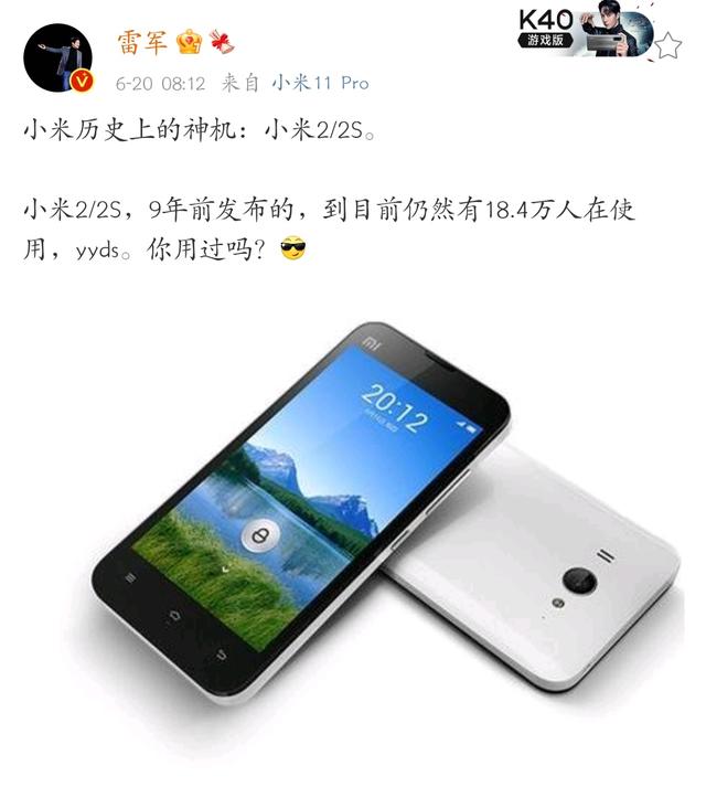 此外,雷军还怀旧了小米神机之一的小米2/2S,发布9年,目前仍有 18.4 万人在使用。
