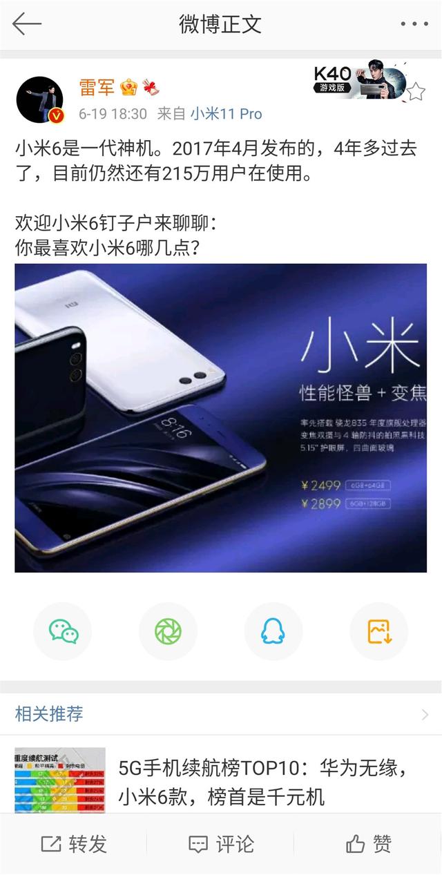 我已经可以想到2022年的雷军微博了:小米6到现在仍然有200万的用户数量,堪称是史上最成功的数字旗舰。
