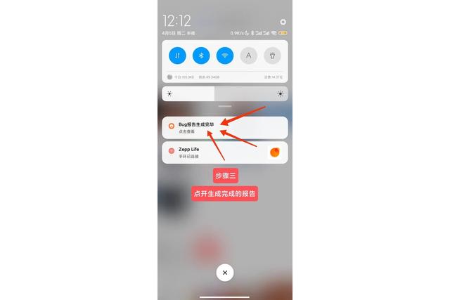 步骤二:输入完成后,下拉小米通知栏,如图自动生成报告中,等待时间大概两分钟左右,等加载到100%就行了
