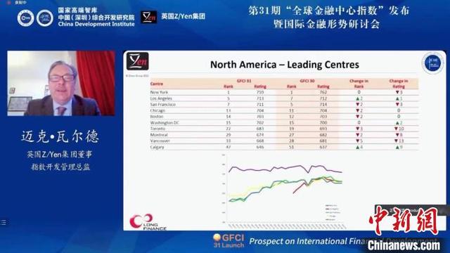 中新网深圳3月24日电(记者 郑小红)“第31期全球金融中心指数报告(GFCI31)”,24日在中国深圳和英国伦敦同时发布。全球119个金融中心进入榜单,全球前十大金融中心排名依次为:纽约、伦敦、香港、上海、洛杉矶、新加坡、旧金山、北京、东京、深圳。