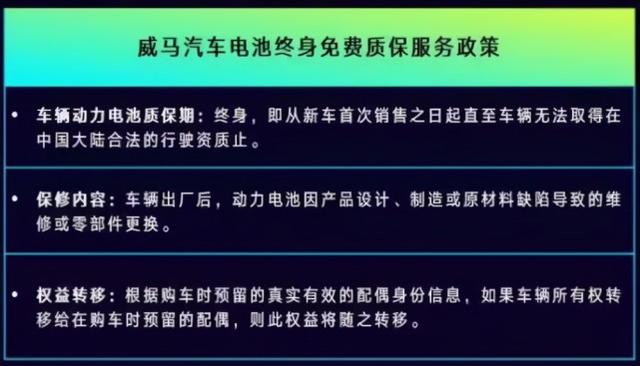 在售后服务方面,比亚迪为电池提供了8年15万公里的质保,而威马汽车则推出了电池终身免费质保政策,解决用户的焦虑和痛点,这是对自身产品的自信。
