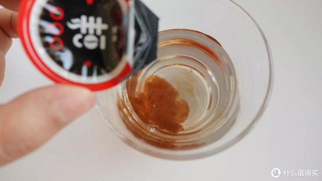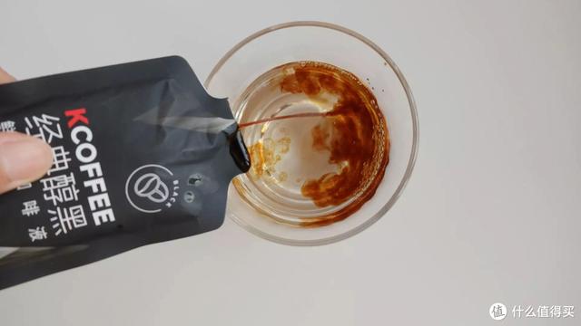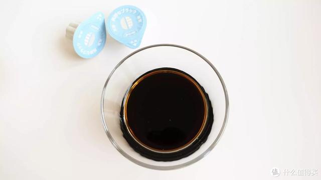 这款是本次评测9款中唯一100%选用阿拉比卡咖啡豆的咖啡液,深度烘焙让咖啡的风味更醇香,有巧克力和坚果的香气。咖啡液颜色比较深,泡沫也比较多,溶解后上下层分层比较明显,需要稍微搅拌一下。