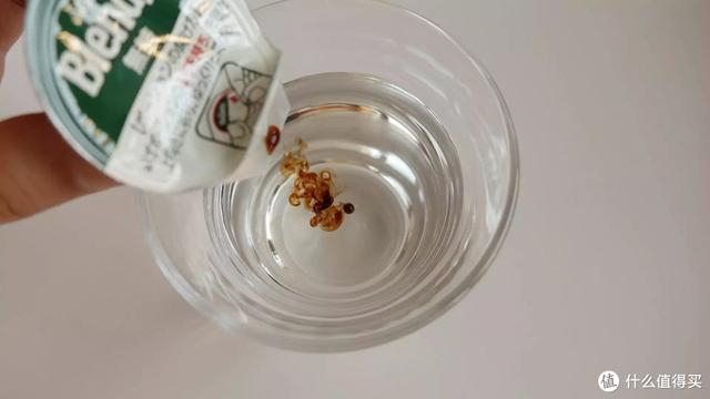 入水即溶,看起来是比较清爽的感觉,倒满后不透光但又不浑浊,杯底没有什么杂质。