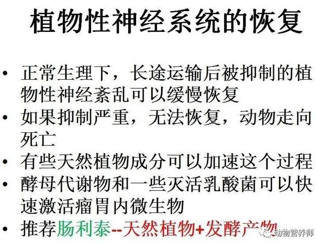 目前反刍动物的经营模式多是异地育肥,就会发生运输应激,造成强烈的植物性神经紊乱,自主神经系统抑制植物性神经系统,反刍停止,瘤胃内微生物瘤胃内自溶,释放大量内毒素,长途运输之后,植物神经系统恢复正常运转需要很长时间。