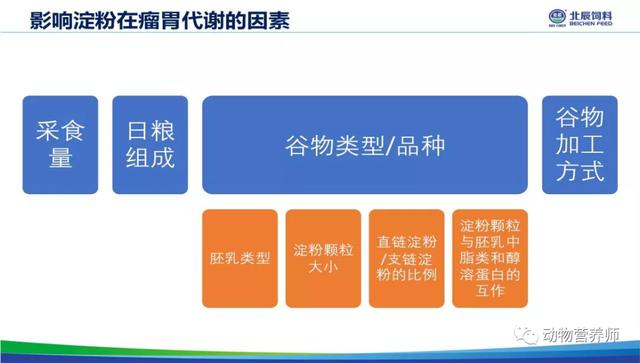采食量、日粮组成、谷物类型/品种、谷物加工方式是影响淀粉在瘤胃代谢的四大因素。