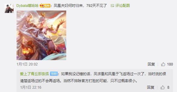 就是类似的评论,几乎能在王者荣耀官方的每条评论下面见到,天美也是被玩家们吵烦了,并且新年将至,还能再趁机“冲一波业绩”,今天,天美官方终于宣布,凤求凰已经优化完成,并确定返场!