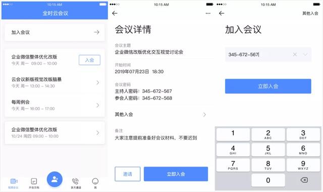 这是一款主打随时随地云会议的高清音视频会议产品,具有着非常灵活的入会姿势。对于参会人员而言,尤为快捷,直接通过手机、电脑、平板、Web、小程序、企业微信一键入会,既不需要调试设备,也无需下载任何插件或客户端。