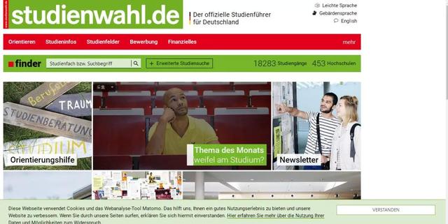首先最重要的网址是“study-in.de”,有德文和英文两种版本,德语水平不太好的同学可以先用英文版本。