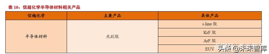 在半导体材料领域,信越化学以有机硅材料为基础,逐渐攻克高纯氢氟酸,高纯单晶硅,稀土磁体,光刻胶,LED 封装,功率半导体材料等产品的技术难关。现在信越化学已经成为了半导体上游材料行业的领导者。在 2019 财年, 信越化学实现营收 15940 亿日元,约合 956 亿人民币。在光刻胶领域市场份额约为 13%。
