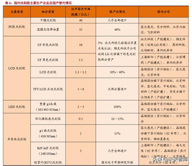 认证时间久,要求严苛;一般产品得到下游客户的认证需要较长的时间周期。显示面板行业通常为 1-2 年,集成 电路行业由于要求较高,认证周期能达到 2-3 年时间;认证阶段内,光刻胶供应商没有该客户的收入,这需要供应收 有足够的资金实力。