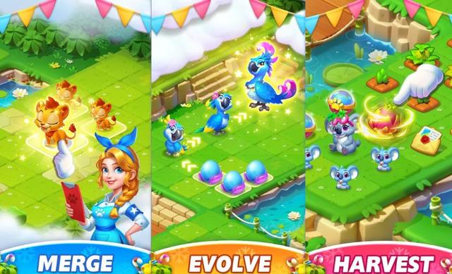 Zoo的核心玩法沿用了目前在欧美比较受欢迎的农场经营+合并类型,只不过经营主题换成了动物园。与大多数合并游戏玩法相同:玩家需要从一小块土地开始进行合并,赚取游戏素材,开垦新的土地并拓展更多的合并元素。