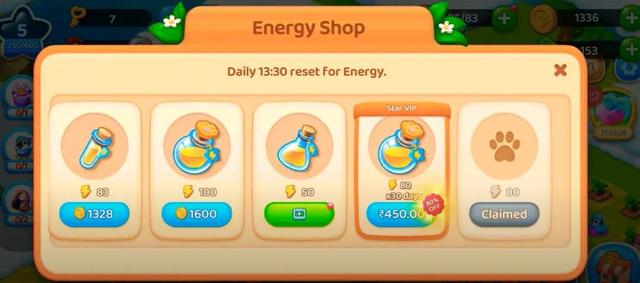 Zoo设计有两种主要的游戏代币,一种是可以直接充值购买或在游戏中少量获得的纸币,另一种则是在游戏中可以较容易获得的金币。在变现模式上,Zoo则采用了混合变现的模式,如获取体力可以通过观看广告或者直接现金购买,当然还可以使用游戏内的金币,除此之外游戏会出售一些限时折扣礼包。