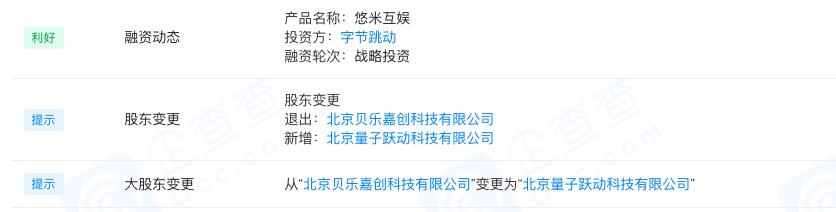 企查查官网显示,《救赎之地》游戏研发商悠米互娱近日完成股权变更,大股东从北京贝乐嘉创科技有限公司变更为北京量子跃动科技有限公司,持股36.25%。