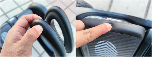 腿控是其与电动扭扭车不同的特色,而且使用了发泡腿控垫,柔软不硌腿。踏板处也采用了弹性防滑处理,踩感同样舒适且不打滑。