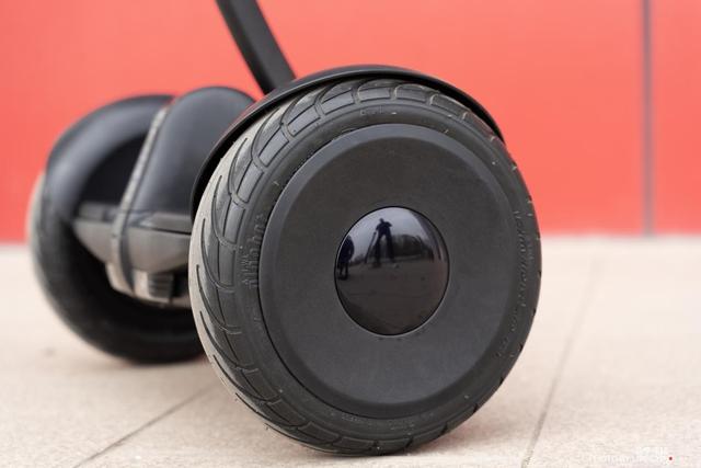 我拿到的这台新款9号平衡车依然是经典造型,双轮版采用Leansteer腿控方向杆设计,两个10.5英寸的真空胎,宽大厚实;黑色机身主体为PC材质,整体的细节部分品质都不错。