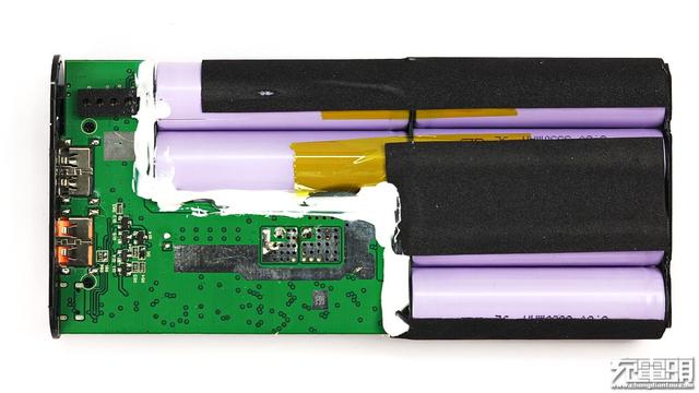 主板PCB呈L型,淡紫色18650*6电芯,为全并联结构,相应的电芯排列方式也为L型,电池组输出用硅胶线与PCB焊接。电芯之间用镍带并联,绝缘措施良好。