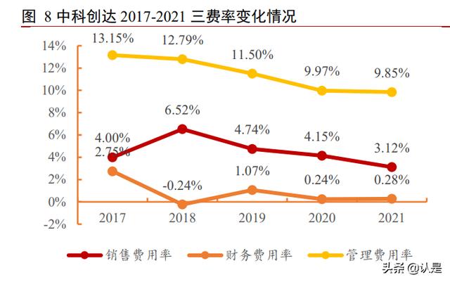 2018-2020 年,公司费用管控得当,销售费用率、管理费用率逐年下降, 2020 年分别降至 9.97%、4.15%。2018 年销售费用率由 4.00%小幅提升至 6.52%, 原因是公司为扩大市场占有率,拓展优质客户,建立全球销售网络,2021 年 销售费用率下降至 3.12%;2021 管理费用率较 2020 年有所下降,为 9.85%; 公司持续加大研发投入,2017-2020 年公司研发费用绝对值不断提升,研发 费用率保持在稳定水平,2021 年研发费用率为 12.43%;公司财务费用整体处 于平稳低水平,2021 年公司财务费用率为 0.28%。(报告来源:未来智库)