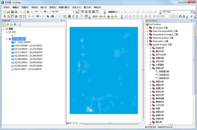 制作二维热力图在ArcToolbox中点击“Spatial Analyst工具密度分析核密度分析”,调用核密度分析工具,如下图所示。