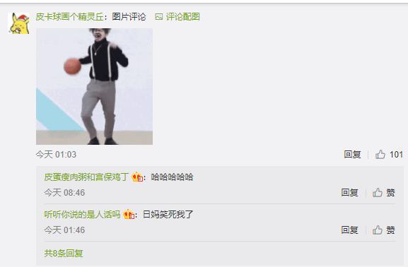 艾翁打球的动作十分的滑稽,官方首次发微博的时候还调侃:"艾翁这个胯下运球,各种转球,玩得很花里胡哨,运球很像一个人"